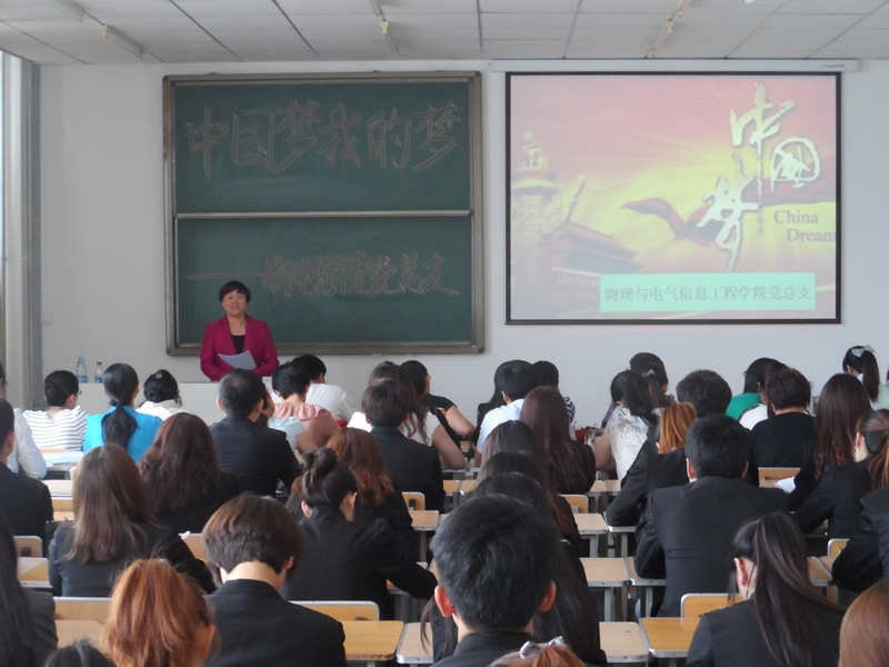 高玉芝书记首先就“中国梦”的由来、主要特征进行了详细的解读;并从“中国梦”是民族的梦、人民的梦、世界的梦等方面分析了“中国梦”的基本内涵;又结合实际阐述了“中国梦”的实践要求。最后,她倡议青年们要“求真务实、攻坚克难、实在工作”,以实际行动为中国梦的实现贡献力量。