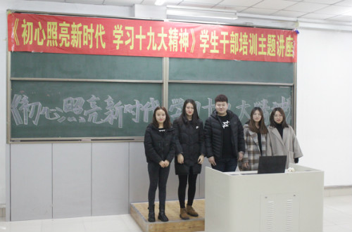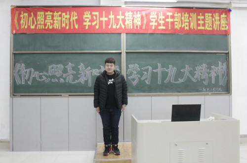 怀初心前行,负使命在肩。作为学生干部,应具有积极向上的乐观态度,良好的自律态度,不去取悦他人的自信,做到全凭自身努力而无需借他人的光。邓雨巍书记讲到,工作不为鲜花的围绕,不为刹那的荣耀,只有执着的信念,化作不停的奔跑,心中燃烧着梦想,脚下不停的步伐,用行动述说着过程的重要,没有无尽的终点,没有无法攀登的险峰,希望载着终点在向你微笑,拼搏吧!经历是一种精彩,迸发你全部的能量,成功是你汗水的写照。把有意义的事情做得有意思。学生除了是教育的对象,还是教育的参与者、创作者,与枯燥的理论说教相比,形式多样的互动参与能使学生产生更多共鸣。当你怀揣着一份喜悦,找到新思路、新办法,才能把事情做得有意思。所谓“好看的皮囊千篇一律,有趣的灵魂万里挑一。”学生应做到,自我教育、自我管理、自我认知,才能找到自己与众不同的价值,自我教育和管理自然离不开书籍,如此成为一个具有文化底蕴的人,真正如习总书记提倡的传承中华文化之根,继承中华文化之魂。