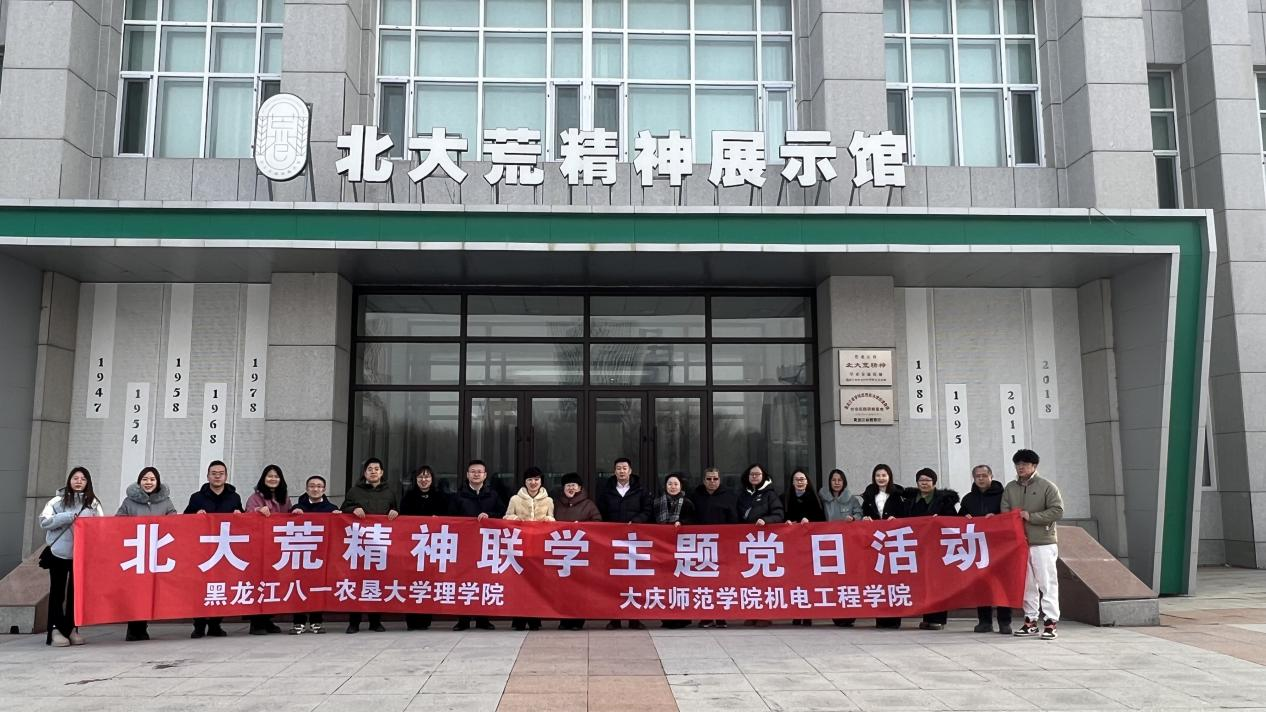 为落实立德树人根本任务,加强基层党组织建设,促进资源共享、优势互补,以互学互鉴为基石,激发党建工作新活力,12月30日,taptap点点官方网站一行13人赴黑龙江八一农垦大学理学院共建交流,签订党建共建协议,进行交流座谈,并进行了北大荒精神联学主题党日活动。八一农大理学院党委书记刘丽、院长冯世德、党委副书记宋添星、副院长朱焕、教师代表,taptap点点官方网站党总支书记闻世宇、院长刘永皓、党总支副书记董云峰、副院长王玉玲、崔峰及教师代表参会。会议由八一农大理学院副院长朱焕主持。