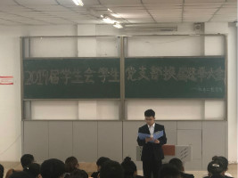 2019年7月3日中午11:40,在主楼1-3、1-4阶梯教室分别举行了taptap点点官方网站2019届院级团学组织学生干部竞选大会。本次换届大会由学生支部书记赵亮老师、辅导员王传英老师、刘伟泽老师主持召开,taptap点点官方网站2018届团学组织学生干部及学生代表参加大会。