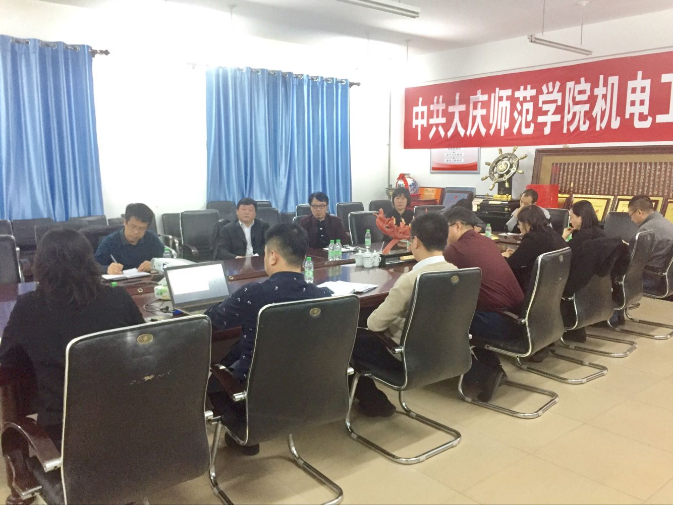 为巩固审核评估结果,推进教育综合改革,有效提高教学质量。2018年11月7日,纪委书记滕强、教务处处长徐权、副处长张国发一行到taptap点点官方网站电子信息工程系检查指导教研活动,taptap点点官方网站院长刘永皓、院长助理成宝芝、中兴通讯派驻学校项目经理赵晓春及电子信息工程系、企业方教师参加了教研活动。