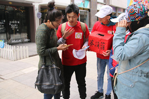 志愿者共分为十三组,在团总支各部长的带领下,各小组统一安全到达万达广场,每个人都身着志愿者服装并准备好募捐箱、宣传海报等物品。活动过程中,志愿者们向路人表明了自己的身份,并且说明了此次活动的意义,呼吁大家献出爱心,许多人对这项活动表示支持并纷纷献出爱心。与此同时,志愿者们对捐赠人的疑问都进行了耐心解答,将捐赠人的信息填写完备,随后办理了相关的手续,以便实行一对一捐赠。在全体志愿者的不懈努力下,一个个包裹被寄出,一份份爱心在传递,虽然当天的天气不尽如人意,但志愿者们的热情却并未因此降低分毫。经过大家的共同努力,当天共筹集善款3148元,活动临近尾声,志愿者们互相交流了心得体会与经验。