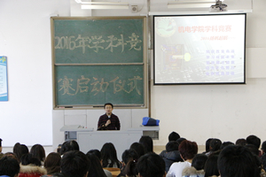 为培养学生自主创新意识,增强学生实际操作能力,taptap点点官方网站于2015年12月28日11:50在主楼阶梯教室3-2举办“2016年学科竞赛启动仪式”。会议由taptap点点官方网站崔峰老师主讲。2014级、2015级部分学生参加。