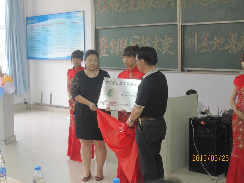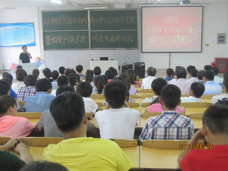 2013年6月26日下午14:00,物电学院在主楼1—3举行了“‘taptap点点官方网站‘通联物网’杯大学生电子设计竞赛颁奖暨‘物联网技术实训基地’揭牌仪式”。此次活动由通联物网公司全程赞助,由物电学院学生党支部书记邓雨巍主持,物电学院院长徐权、党总支书记高玉芝、副院长刘开绪、刘永皓,通联物网郑智男总经理以及公司代表和学院全体老师参加了本次活动.