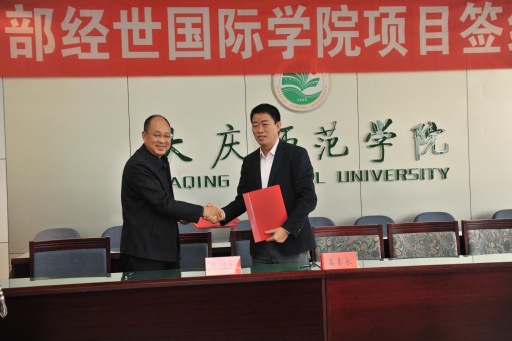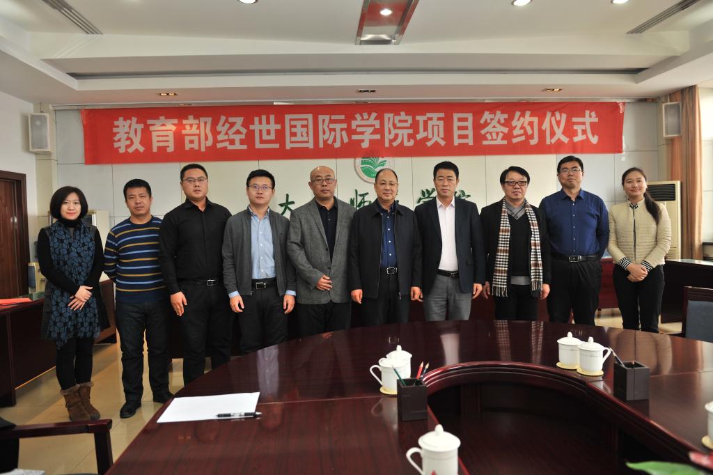 近日,我校成功入选“人文交流经世项目”首批“经世国际学院”项目本科层次合作院校。为落实与执行“经世国际学院”建设方案,2019年12月11日,我校举行“经世国际学院”签约仪式。我校乔志和校长,北京华晟经世信息技术有限公司副总裁姜善永、企业运营部部长程显华,教务处、科研处、国际合作交流处、taptap点点官方网站、计算机科学与信息技术学院等部门领导参加了签约仪式。