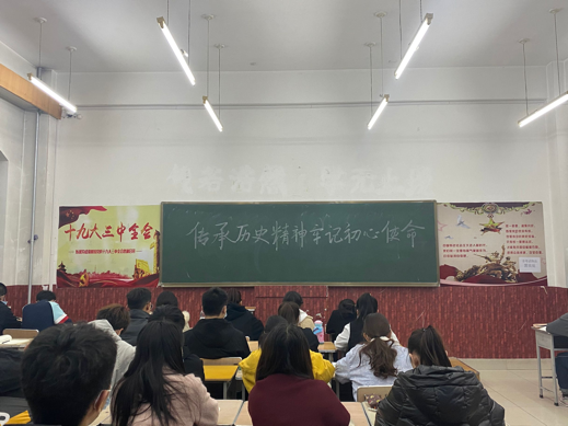 回顾历史的过往,在革命战争时期,无数革命先辈抛头颅、撒热血,才带领全国各族人民最终推翻了“三座大山”才迎来了新中国的成立和人民的当家作主;在国家建设与发展时期,无数行业发展先行者,在各自的工作岗位上默默付出和无私奉献,我们才能在改革与发展的征途上取得一个又一个的突破,让国家建设和人民生活水平越来越好。身为新时代的大学生我们应该扛起复兴伟大祖国的艰巨使命。班会上同学们共同观看了纪录片《十一书》,十一书选取了11位共产党人的感人素材,包括贺页朵的“宣誓书”、傅烈的“绝命书”、寻淮洲的“请战书”、王尔琢的“托孤书”等,展示了共产党人用生命和鲜血铸就的信念与忠诚、永远坚守的初心和使命。