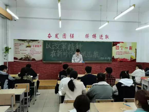 新时代、新篇章、新作为,作为新时代的青年,定要传承四史精神,在本次班会上团支书介绍到:改革开放史是中国特色社会主义的自我改善,自我发展的历史,是党领导中国人民创新创造、融入世界的实践历程,自1987年十一届三中全会开始,改革开放便一路高歌猛进。同学们也深刻了解到改革开放与科学发展的辩证关系:深化改革开放是推进科学发展的动力和保证,推进科学发展是深化改革的方向和目的。