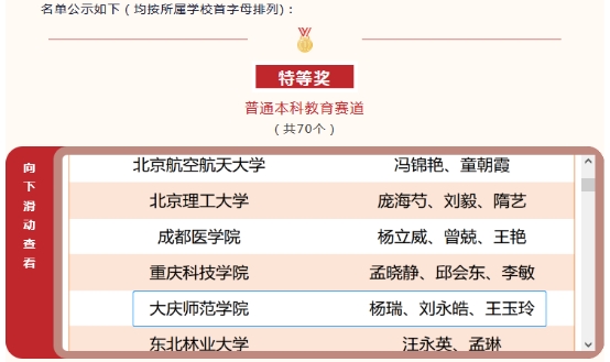本届大赛分普通本科教育和职业教育两个赛道,组委会评选出:普通本科教育赛道特等奖70个、一等奖146个、二等奖375个,最佳组织奖14个。