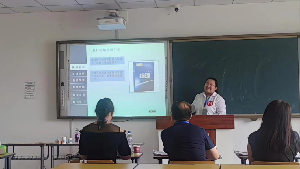 展评活动过程精彩纷呈,参赛选手按抽签顺序依次进行以"说课"形式进行教学阐释和“无生教学”形式进行片段展示。我校选手精心准备,巧思精琢,以自信的教态,端正的仪表和扎实的基本功,呈现物理课程教学过程;借助PPT从单元教学内容、单元课时安排、教学目标定位、基本理念、教学过程、板书设计、教学反思、教学评价等方面进行教学阐释,充分展现了作为一名师范生所具备的素养和能力。