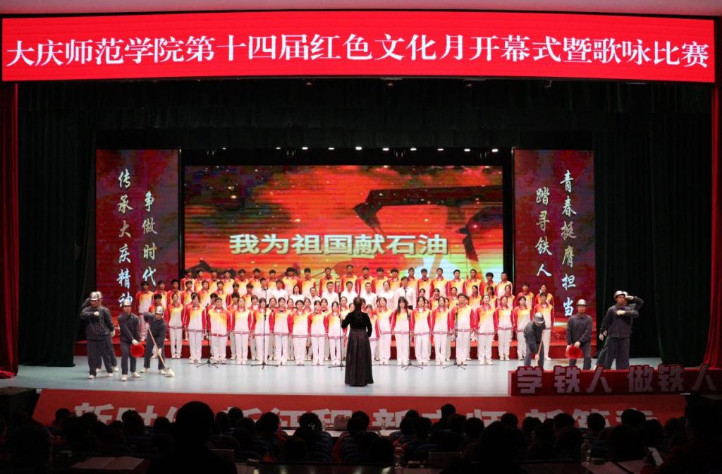 随着音乐的前奏缓缓响起,大家心中充满了力量,歌声,在这一刻如潮水般汹涌而来,激昂人心,气势磅礴。参赛老师与同学们以高昂的斗志,仿佛化身为一股不可阻挡的洪流,他们的眼神中闪烁着对胜利的渴望,更蕴含着对大庆精神(铁人精神)的深刻理解与崇高敬意。