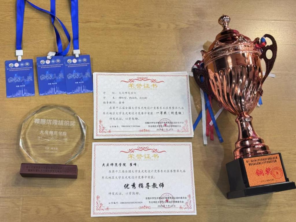 我校taptap点点官方网站高度重视此项赛事,精心组织,经过院内严格选拔,派出多支实力强劲的队伍参赛。机电学子凭借扎实的理论功底、出色的创新设计能力和精湛的实践操作水平,取得了创意赛一等奖1项、二等奖7项的骄人战绩。其中一支队伍参加路演决赛,通过不断精进项目方案和改进实验,最终获得路演铜奖的好成绩。我校也被授予第十三届全国大学生光电设计竞赛(东北赛区)“竞赛优秀组织奖”。