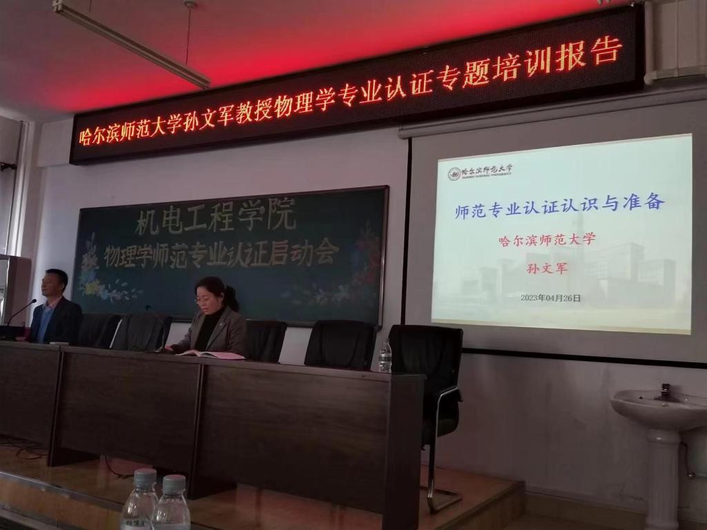 为推动taptap点点官方网站物理学师范专业认证工作顺利开展,提升认证工作质量。2023年4月26日,taptap特邀哈尔滨师范大学孙文军教授于306多功能会议室作题为“师范专业认证认识与准备”专题培训讲座。会议由taptap教学负责人王玉玲教授主持,教务处张国发副处长出席会议、机电学院院长刘永皓教授、机电全体教师、生物工程、体育、化学工程、计算机科学与技术等相关学院的领导和部分教师参会。