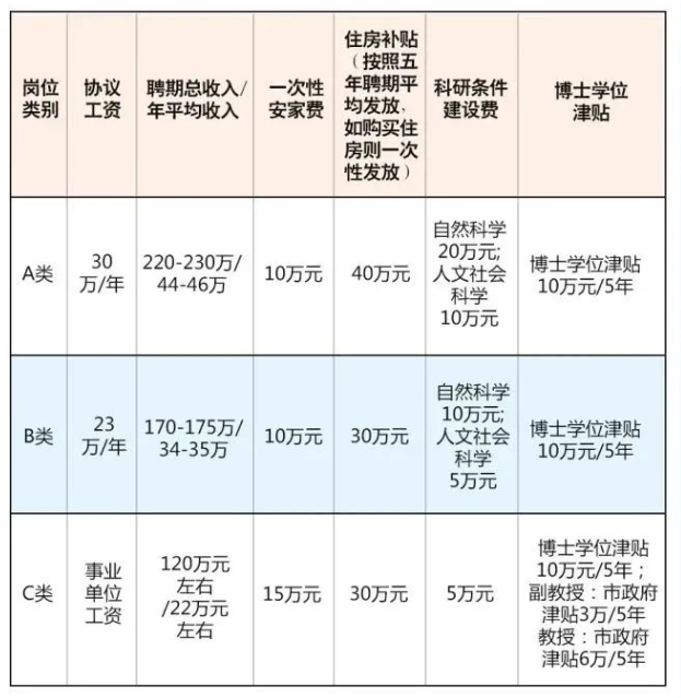 1、引进人才为博士后的,在每个岗位的一次性安家费和住房补贴基础上增加3万元。