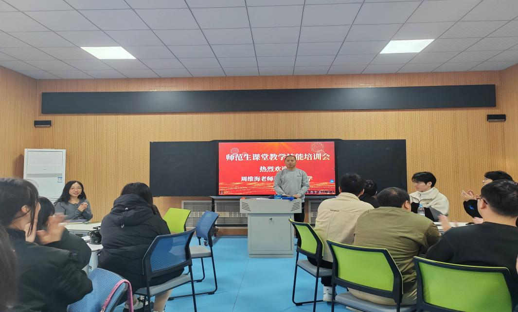 2024年11月15日,taptap点点官方网站物理学专业召开师范生课堂教学技能培训会,会议特邀大庆市物理兼职教研员、高中物理学科专家组成员、大庆市名师工作室负责人、大庆第一中学周维海老师对22级物理学师范生进行课堂教学技能培训,物理学专业全体教师参加会议。