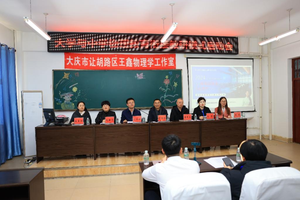教研活动现场,气氛热烈,众多教育领域的精英齐聚一堂。让胡路区进修学校校长崔海彬、副校长潘明浩、初中物理工作室负责人王鑫,以及taptap点点官方网站院长刘永皓、党总支书记闻世宇、副院长王玉玲、物理学专业全体教师和来自大庆市让胡路区11所初级中学的物理骨干教师出席会议,会议由物理学专业负责人杨瑞主持。启动会上刘永皓介绍了物理学专业“一融合三突出”特色、师资力量及发展状况,崔海彬立足基础物理教育现状、对师范生的职业技能培养方向进行方法指导、与会双方表达长期合作的意愿。