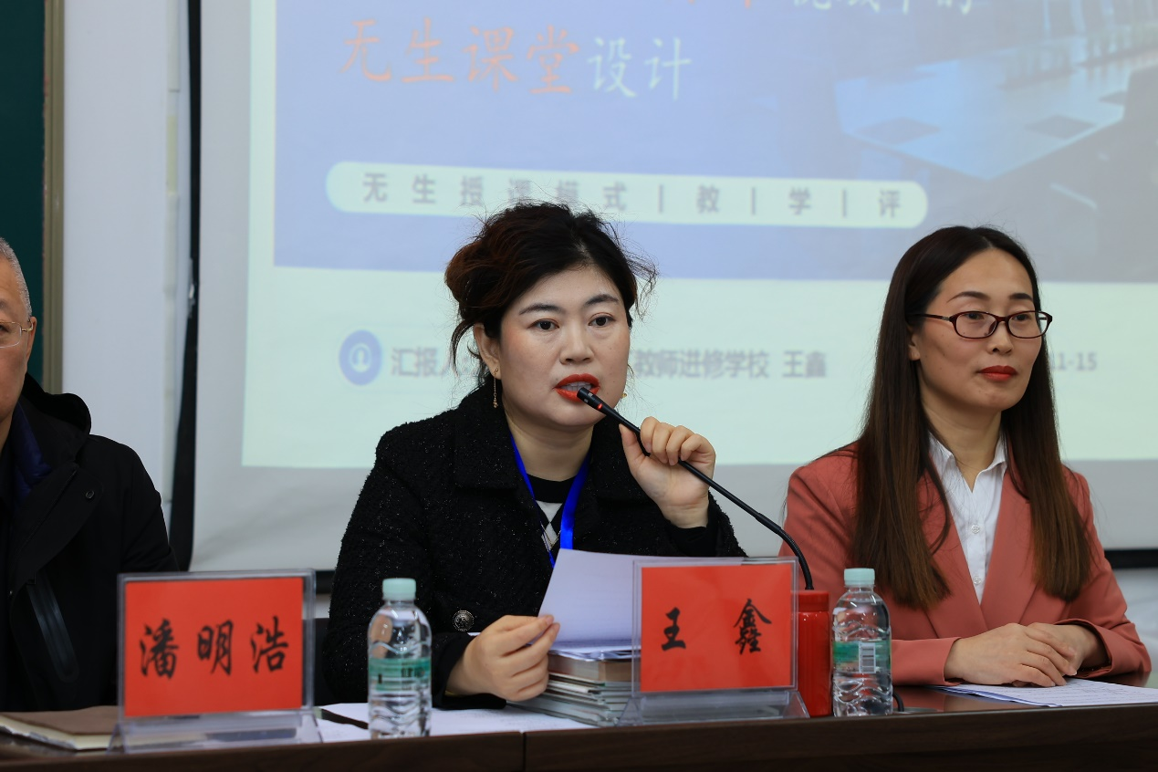 随后,初中物理工作室负责人王鑫教研员以“教-学-评”一体化的设计思路,做了题为《浅谈新课程标准视域下的无生课堂设计》讲座,讲座中深入剖析了什么是无生授课的模式、并邀请铁人中学李玉鹏老师无生课堂展示、大庆市第36中学赵春超老师对课堂教学展示给予了范例式的点评。整个环节环环相扣,形成完美的教育闭环。通过闭环设计,参会师生对无生课堂教学如何教,如何学,如何评都有了深刻的认识。会议充分体现了大庆市让胡路区进修学校对中学教师教学能力培养上的扎实工作,也体现双方对taptap点点官方网站物理学师范生的殷切期望与前瞻性综合能力培养。