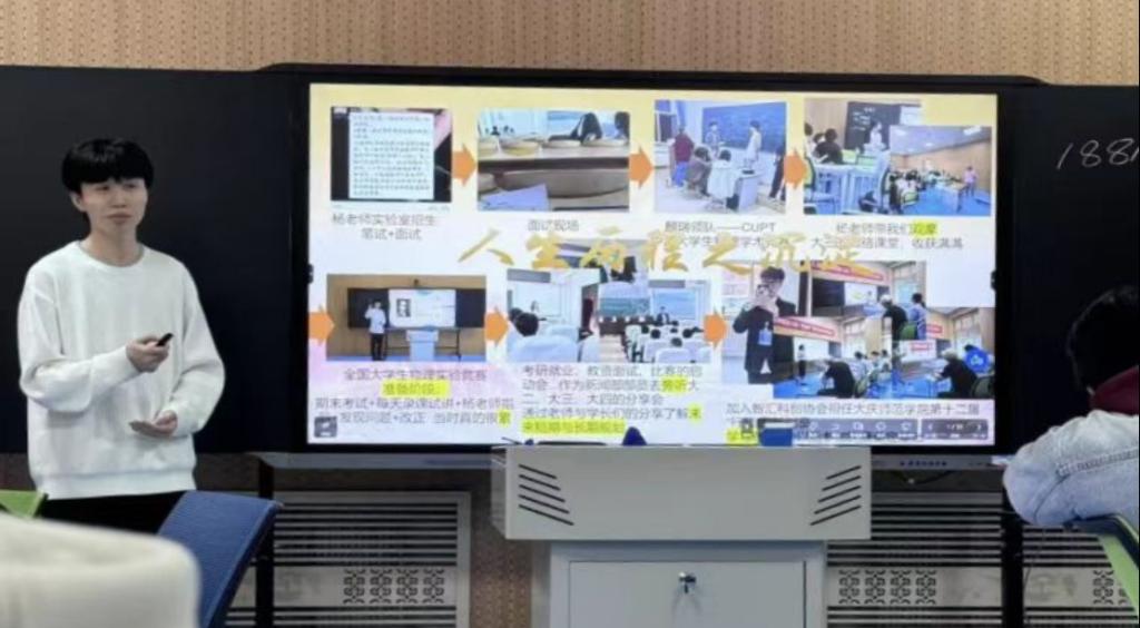 周宇航同学讲述了自己由于对物理专业和物理教师这一职业的热爱来到了taptap点点官方网站,来到本专业遇到了受益一生的导师--杨瑞老师,在杨瑞老师的悉心指导和同伴们的共同努力下获得了第十八届iCAN大学生创新创业大赛(黑龙江区)二等奖、taptap点点官方网站第十三届“行知杯”教学技能竞赛一等奖等奖项。