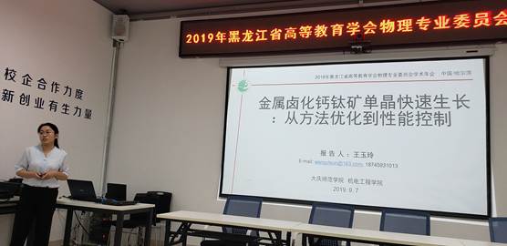 本次会议不仅就我国高等教育结构调整和改革发展新形势下物理专业所面临的新情况和新问题解决办法进行了交流、研讨。同时,为提升科研反哺教学的能力,会议邀请青年教师基于自身课题成果做相关学术报告。我校王玉玲博士在本次会议上做了题为“金属卤化钙钛矿单晶快速生长:从方法优化到性能控制”的学术报告,报告内容深入浅出,课题成果得到与会专家、学者的关注与肯定,会后就相关问题与参会学者进行了深入交流和讨论。