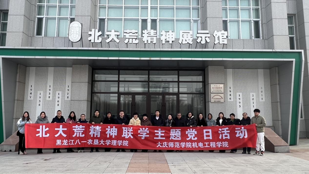 为落实立德树人根本任务,加强基层党组织建设,促进资源共享、优势互补,以互学互鉴为基石,激发党建工作新活力,12月30日,taptap点点官方网站一行13人赴黑龙江八一农垦大学理学院共建交流,签订党建共建协议,进行交流座谈,并进行了北大荒精神联学主题党日活动。八一农大理学院党委书记刘丽、院长冯世德、党委副书记宋添星、副院长朱焕、教师代表,taptap点点官方网站党总支书记闻世宇、院长刘永皓、党总支副书记董云峰、副院长王玉玲、崔峰及教师代表参会。会议由八一农大理学院副院长朱焕主持。