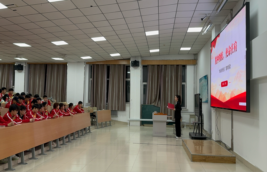 在宣讲环节,2023级青马工程学员刘芮围绕大庆精神(铁人精神)、五四精神,深入探讨它们与个人成长、时代使命的紧密联系,宣讲人用富有感情的演讲带动团员青年们在真学真信中加强修养、坚定信念,在学思践悟中淬炼本领、担当作为。
